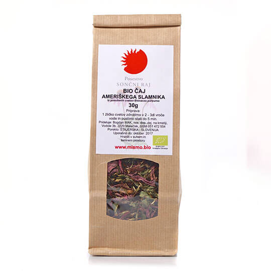 Ameriški slamnik velja za eno izmed najbolj učinkovitih zdravilnih rastlin, ko želimo okrepiti svoj imunski sistem in dvigniti njegovo odpornost. Pri nas poznamo več pripravkov iz tega zelišča, med sabo se ti navadno razlikujejo po načinu priprave. Čaj, ki vsebuje ameriški slamnik, vsebuje zdravilne učinkovine, ki so topne v vodi. Ekološka pridelava.